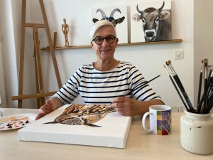Ich heisse Moni Amstutz, bin in Ennetbürgen geboren und dort auch zu Hause. Von klein auf liebte ich bunte Farbstifte und den Malkasten. Ich zeichnete und malte schon immer sehr gerne. Dieses Hobby hat mich all die Jahre hindurch neben Beruf, Muttersein, Haushalt und Arbeit für Kirche und Gemeinde begleitet. Genaues Beobachten und auf Bildern festhalten, ist die Fähigkeit, die mich auszeichnet. Meine fotogetreu gemalten Bilder in Acryl bereiten hoffentlich Freude und Erstaunen und zaubern aber auch immer wieder ein Lächeln ins Gesicht.